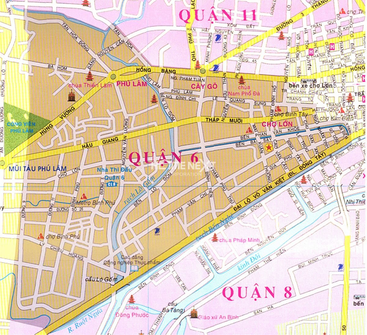- Quận 6: diện tích 7.2 km², dân số: 258.948 người