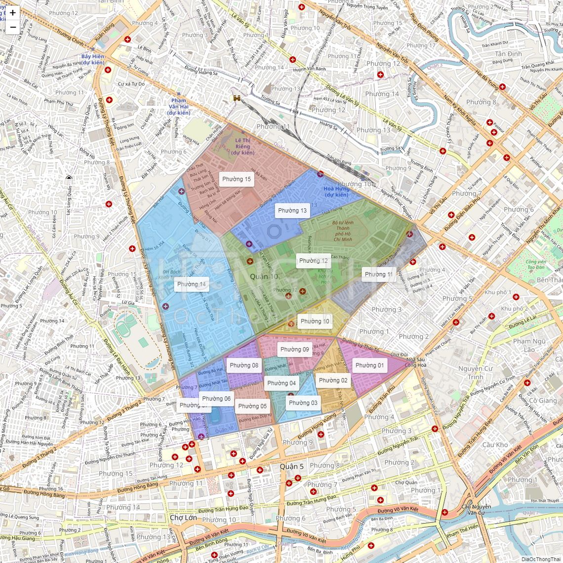 - Quận 10: diện tích 5.72 km², dân số: 234.588 người