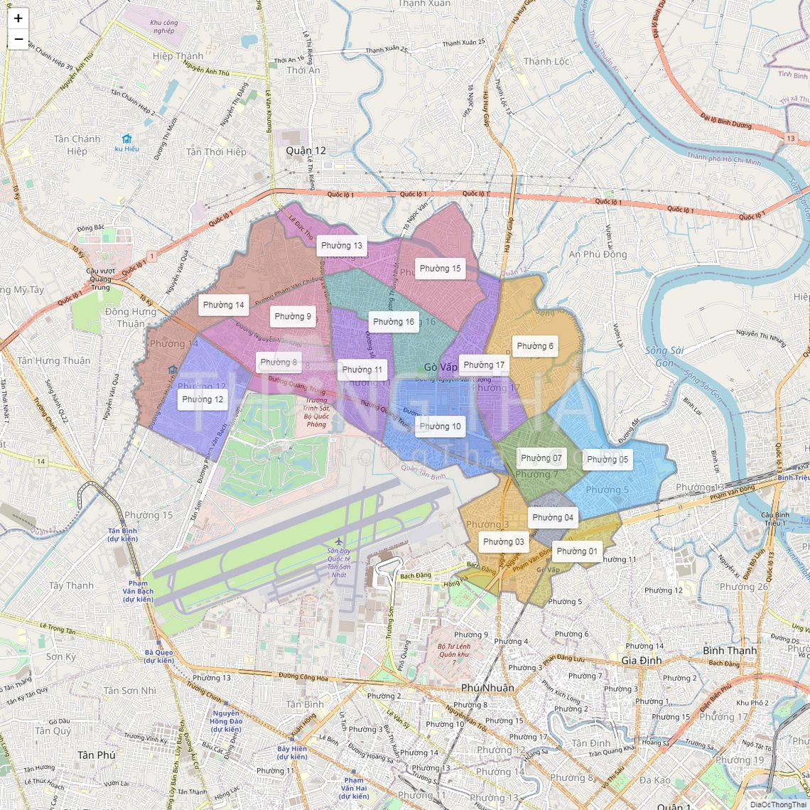 - Quận Gò Vấp: diện tích 19.76 km², dân số: 635.988 người