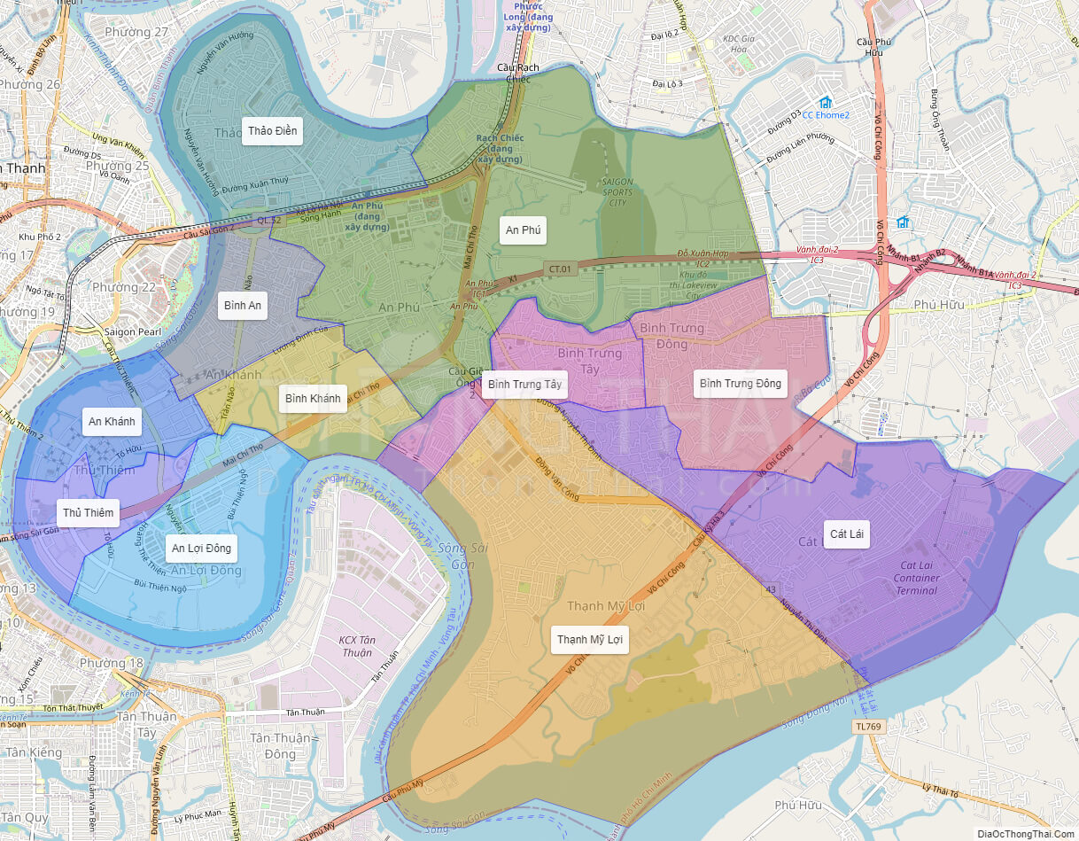 - Quận 2: diện tích 49.75 km², dân số: 147.168 người